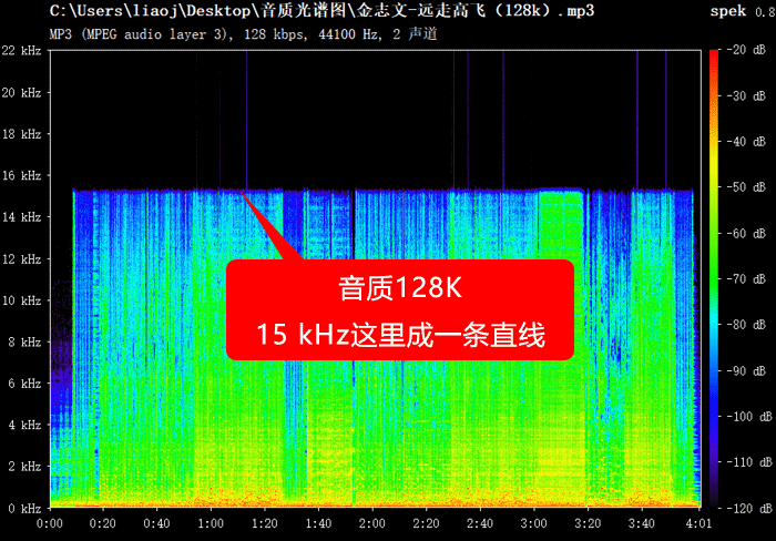 m.398c.com/spek-0.8.2.zip2、打開spek軟件,打開一首歌曲(支持將歌曲文件拖放到軟件),本文以金志文的《遠走高飛》為例;